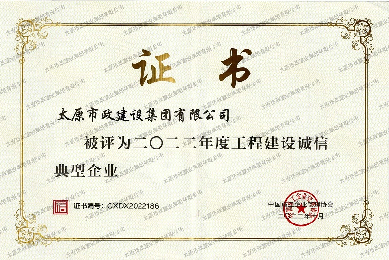 2022年度工程建設(shè)誠(chéng)信典型企業(yè)